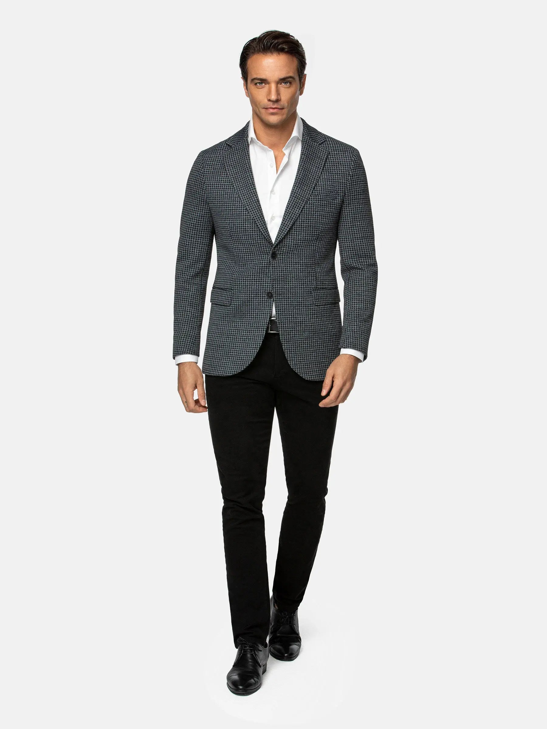 The Minerva Black Grey Blazer blends sophistication with a modern edge. Featuring a slim fit, wide notch lapel, and classic check pattern, it delivers a sharp and versatile look. Pair it with matching trousers or chinos for effortless style.