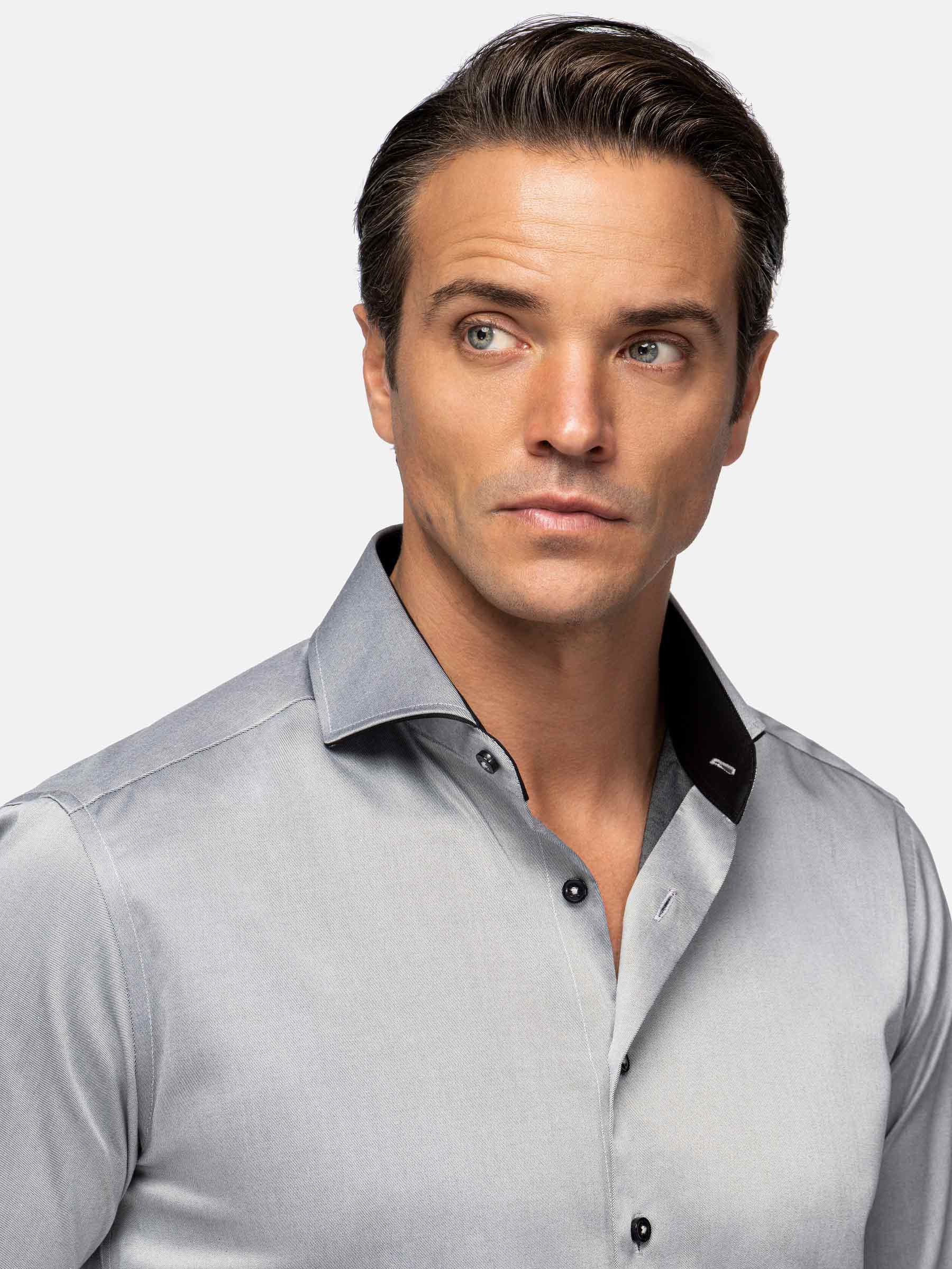 Terrassa effen grijze shirt met lange mouwen – een grijs shirt met een mooie glans. Het staat erg mooi bij een pantalon voor een nette look. Het shirt is afgerond aan de onderkant. De zwarte manchetten zorgen voor een mooi kleurcontrast wanneer ze omhoog worden geslagen. Gemaakt van 96% katoen en 4% lycra. Om de kwaliteit te behouden, raden we aan dit shirt binnenstebuiten te wassen op 30 graden. Niet bleken. Strijken op 110 graden. Niet geschikt voor de droger. Dit effen grijze Terrassa shirt met lange mouwen is een must-have voor iedereen die kwaliteit en stijl waardeert. Perfect voor elke gelegenheid, het combineert comfort met een elegant design. Bestel nu en voeg dit tijdloze item toe aan je garderobe.